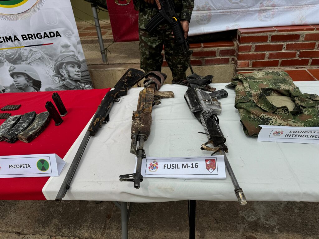 En la acción militar se dio la muerte de uno de los integrantes de esta estructura criminal, así como la incautación de dos fusiles, una escopeta, seis artefactos explosivos improvisados, material de comunicaciones, intendencia, además de proveedores y municiones de diferente calibre, elementos con los que pretendían atentar en contra de la población civil y la Fuerza Pública.