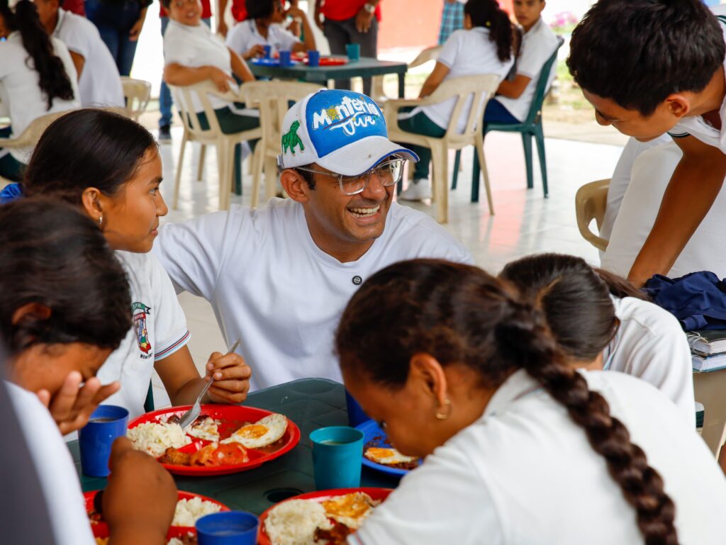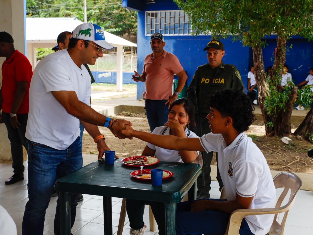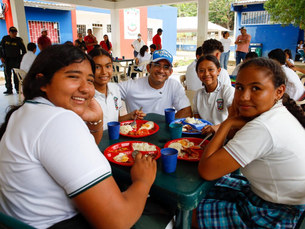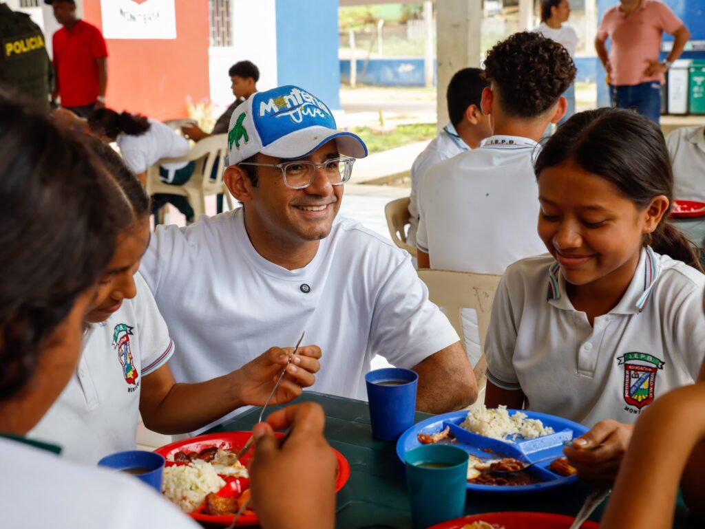 El alcalde de Montería, Hugo Kerguelén, visitó la Institución Educativa Pueblo Bujo para inspeccionar de primera mano la calidad de la alimentación que reciben los estudiantes como parte de la Ración Preparada en Sitio del Programa de Alimentación Escolar.