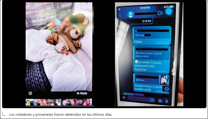Luego de eso, el pedófilo le dice a la mujer que cuadra la cita: “Tú en el baño, por fa, para que haya privacidad porque probable (sic) llore otra vez por el dolor y así ella entiende que no hay vuelta atrás, que me tiene que dejar disfrutar y que ella también trate de disfrutar, y si se porta bien y da buen cariño, la sigues trayendo”.