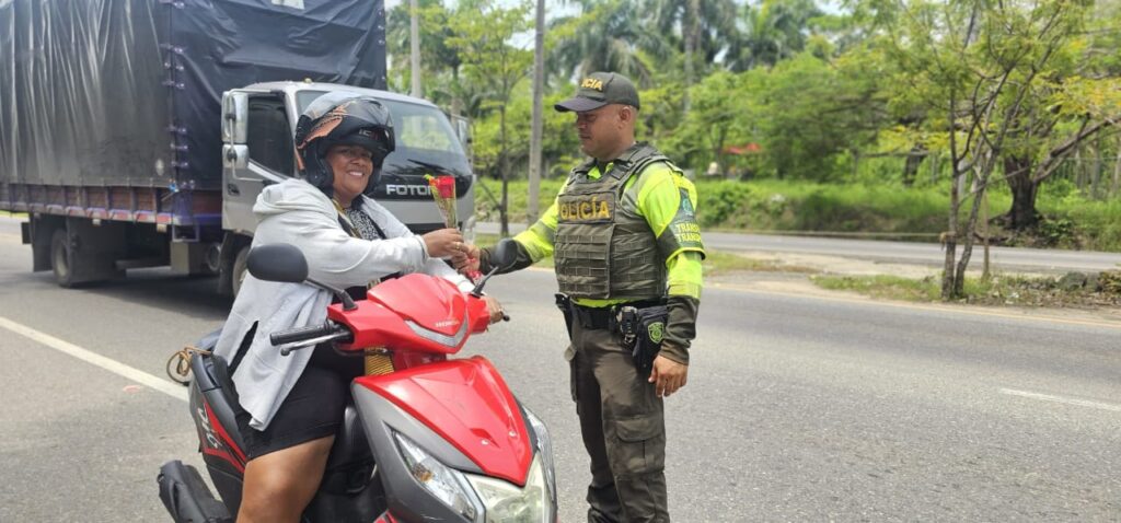 El sol despuntó sobre Bolívar con su brillo habitual, pero este domingo la jornada trajo consigo un gesto distinto. En vez de limitarse a vigilar el tránsito y revisar documentos, los uniformados de la Policía Nacional, adscritos a la seccional de Tránsito y Transporte, apostaron por la sensibilidad. Se acercaron a los buses intermunicipales con las manos llenas de flores. En lugar de interrogar, saludaron. En vez de pedir licencias, ofrecieron ramos.