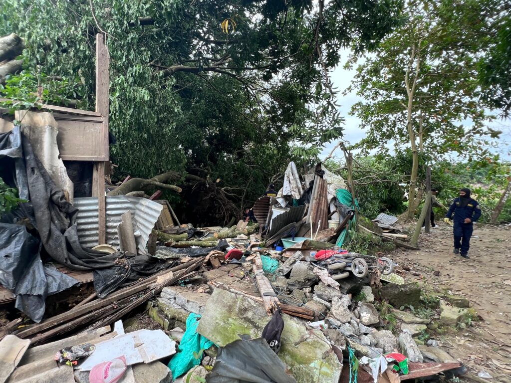 Como consecuencia del fenómeno natural, varias viviendas, en esta zona vulnerable, resultaron destrozadas por la caída de cuatro gigantesco árboles, uno de ellos casi acaba con la vida de dos niñas de 3 y 4 años.