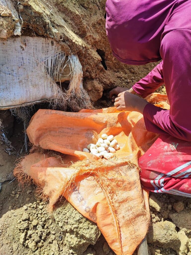 Más de 500 huevos de iguana fueron protegidos por la Corporación Regional de los Valles del Sinú y del San Jorge (CVS) luego de que un grupo de trabajadores, que limpian un lote de la Diócesis de Montería, los encontraran enterrados en lomas de tierra.