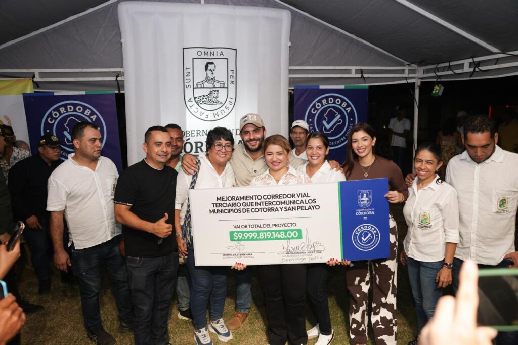 Cotorra, 14 de agosto de 2025- El gobernador de Córdoba, Erasmo Zuleta Bechara, entregó a la alcaldesa María Eugenia López y a la comunidad del corregimiento La Culebra, municipio de Cotorra, un cheque simbólico que representa los recursos para la pavimentación de 2,8 kilómetros que conectarán esta comunidad agrícola con el casco urbano y los municipios de San Pelayo y Chimá, mejorando la movilidad, el comercio y la calidad de vida de miles de familias.