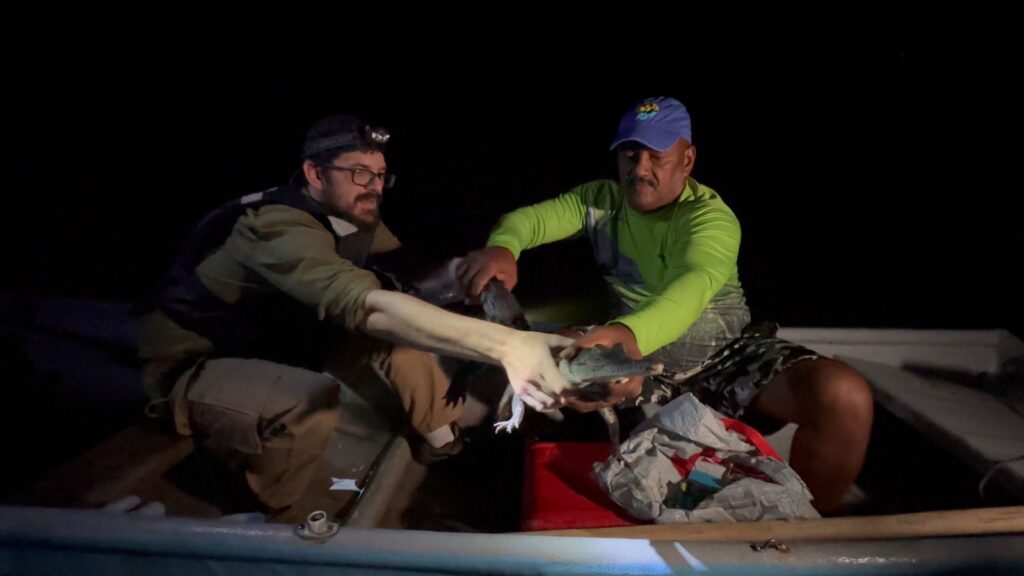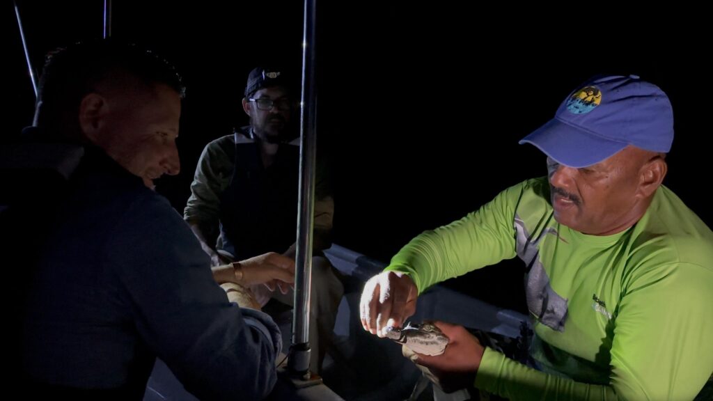 La primera jornada concluyó con la liberación de dos ejemplares y el desarrollo de las labores de monitoreo nocturno, que permitieron la identificación de 30 individuos en su hábitat natural.
